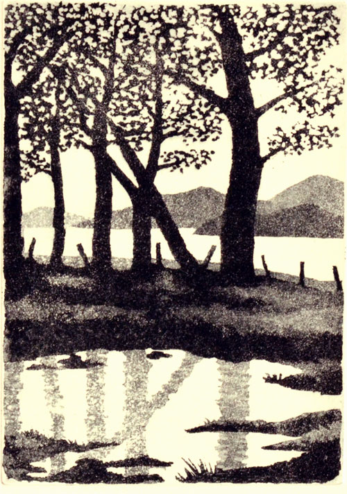 "Bäume am See" Aquatinta 2019 12,5 x 18 cm auf ca. 20 x 26 cm Büttenkarton Auflage limitiert auf 33 Drucke
